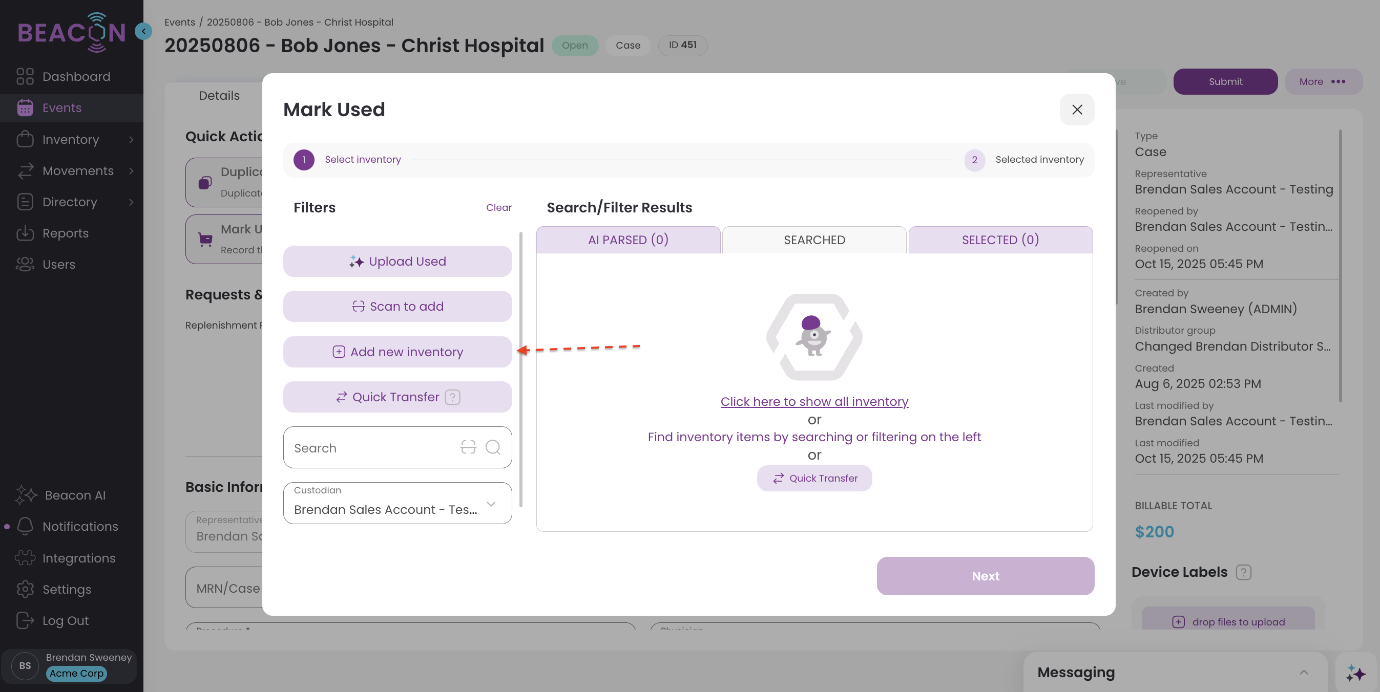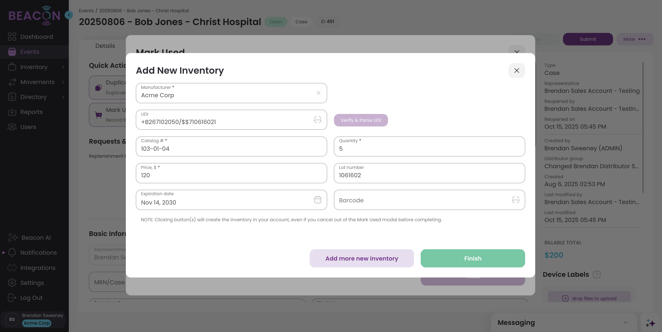 If your organization admins have enabled the setting for you, you can create inventory on your own, without even leaving the mark used inventory screen.