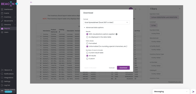 - Data Values: Unformatted (no rounding, special characters, etc.)