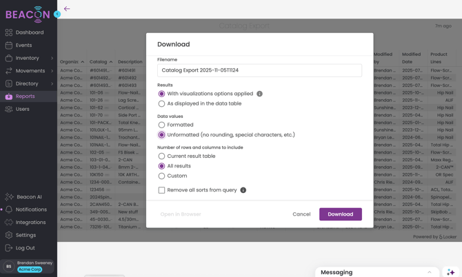 - This is very important as your data set may extend farther than Looker is able to display visually in Beacon, but you want to make sure to export all data.