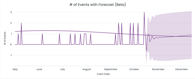 This graph provides a forecast baseline based on your Event history and shows you the projected average number of events over the coming months while also showing the high/low range.