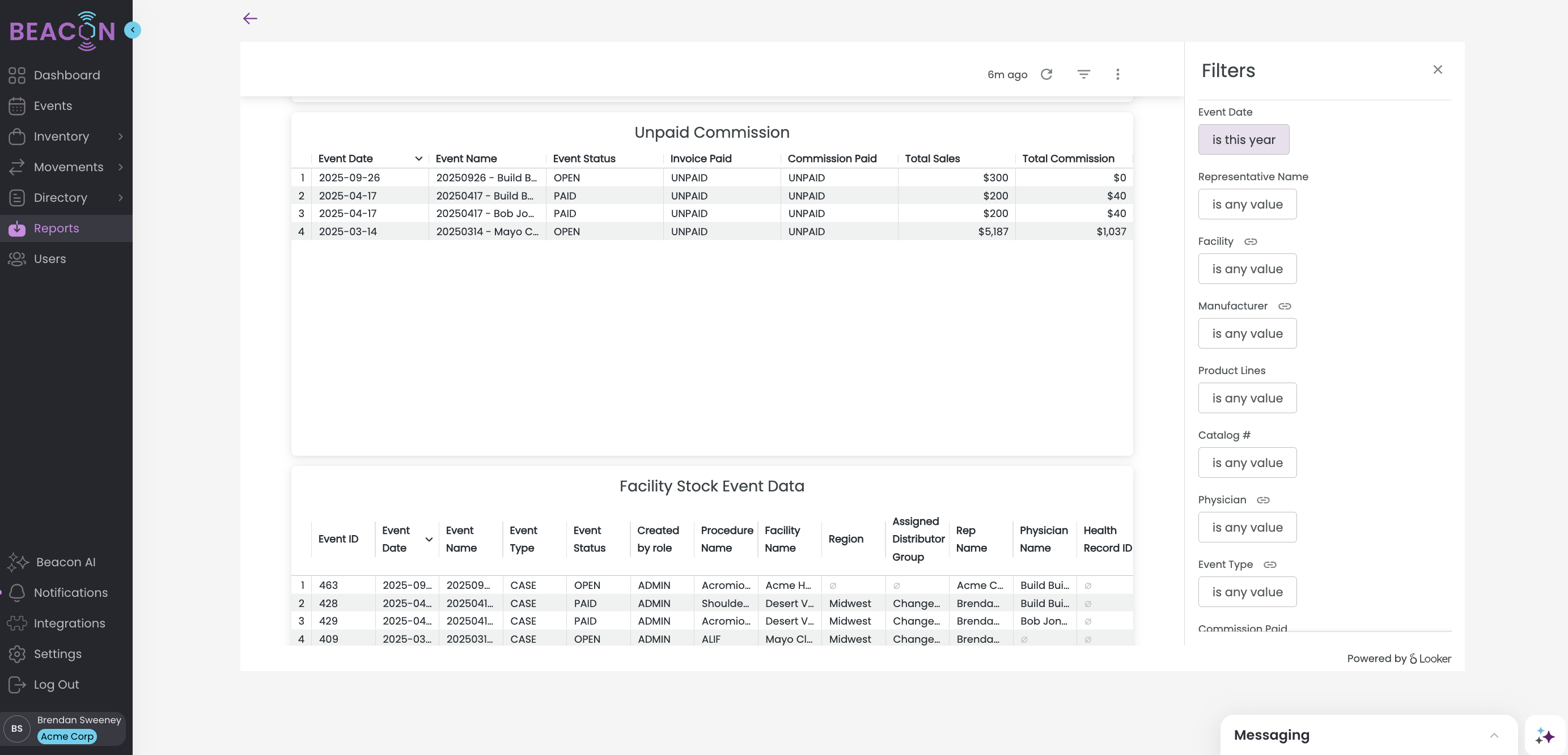 4. Use the Unpaid Commissions report to identify use of facility stock in cases where commissions should be paid for the original sale, because a rep covered the case where the inventory was subsequently used.
