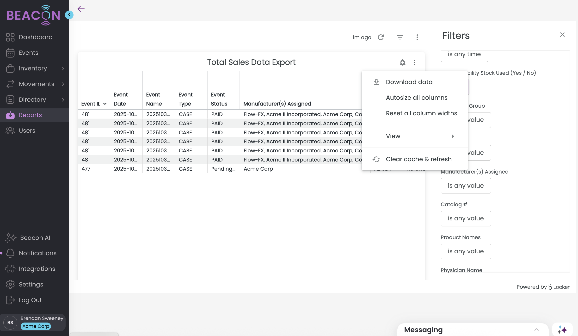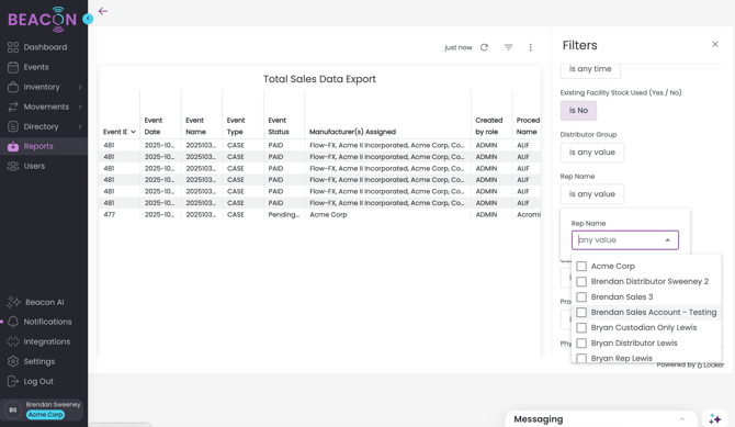 The results will filter to the Events assigned to that user where you can drill down into each Case and its associated sales.