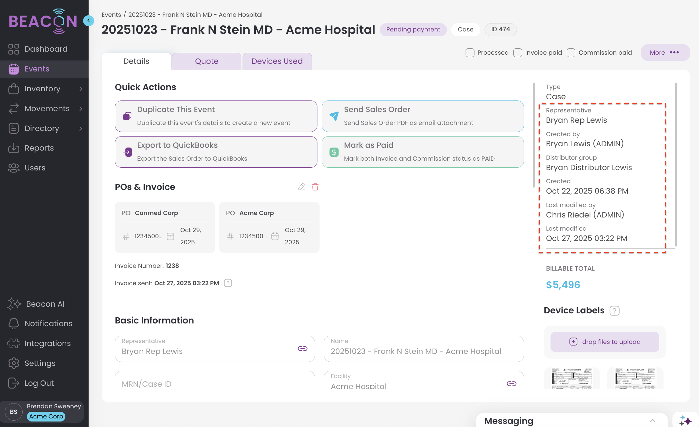You can easily track changes to events by referencing the tracking information in the side rail on the detail page.