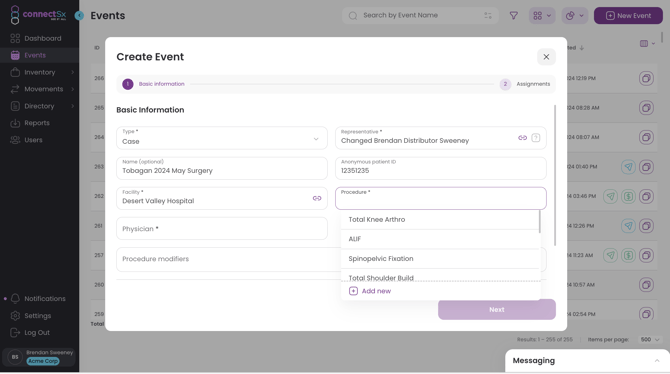 1. You should select every manufacturer that will have inventory used in the Event. Manufacturer is populated from the Directory.
