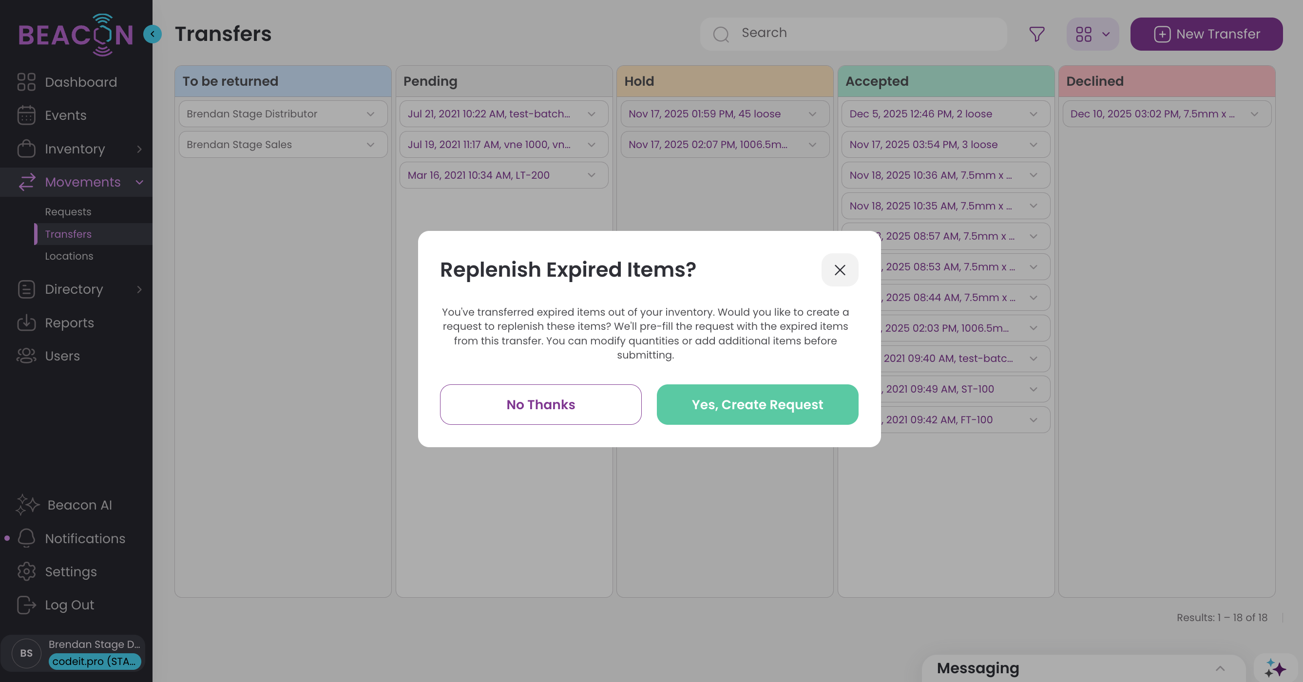 Transfers will now allow users to transfer expired custody back to the organization once they confirm the action, also allowing them to automatically create a replenishment request for those items.